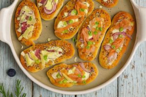 Außen goldbraun und knusprig, innen herrlich weich: Diese Lángos werden nicht frittiert, sondern im Ofen gebacken – und durch den Quark im Teig extra eiweißreich und saftig.
